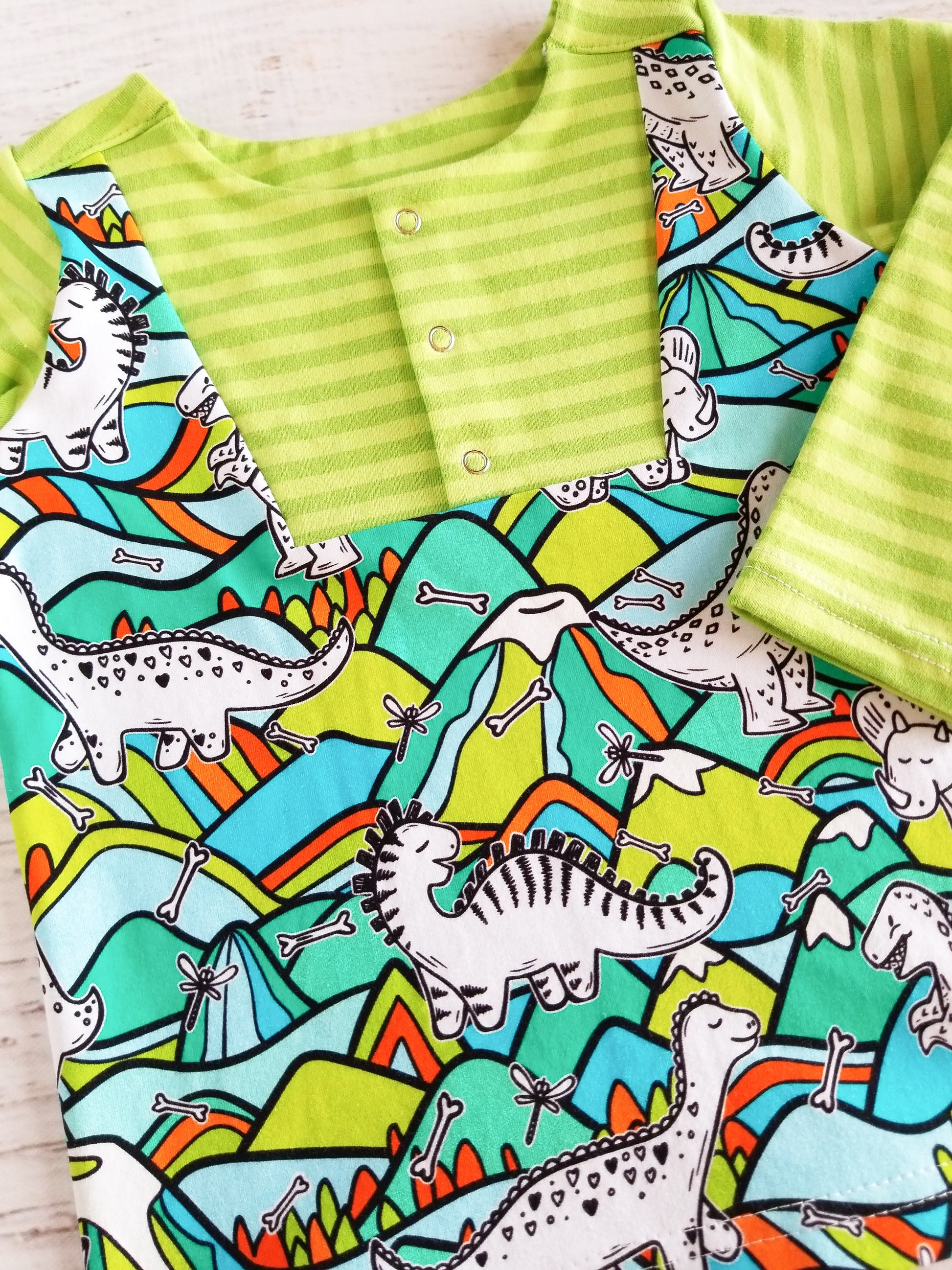 Long sleeve snap front tee, dinos, orange, 18-24m