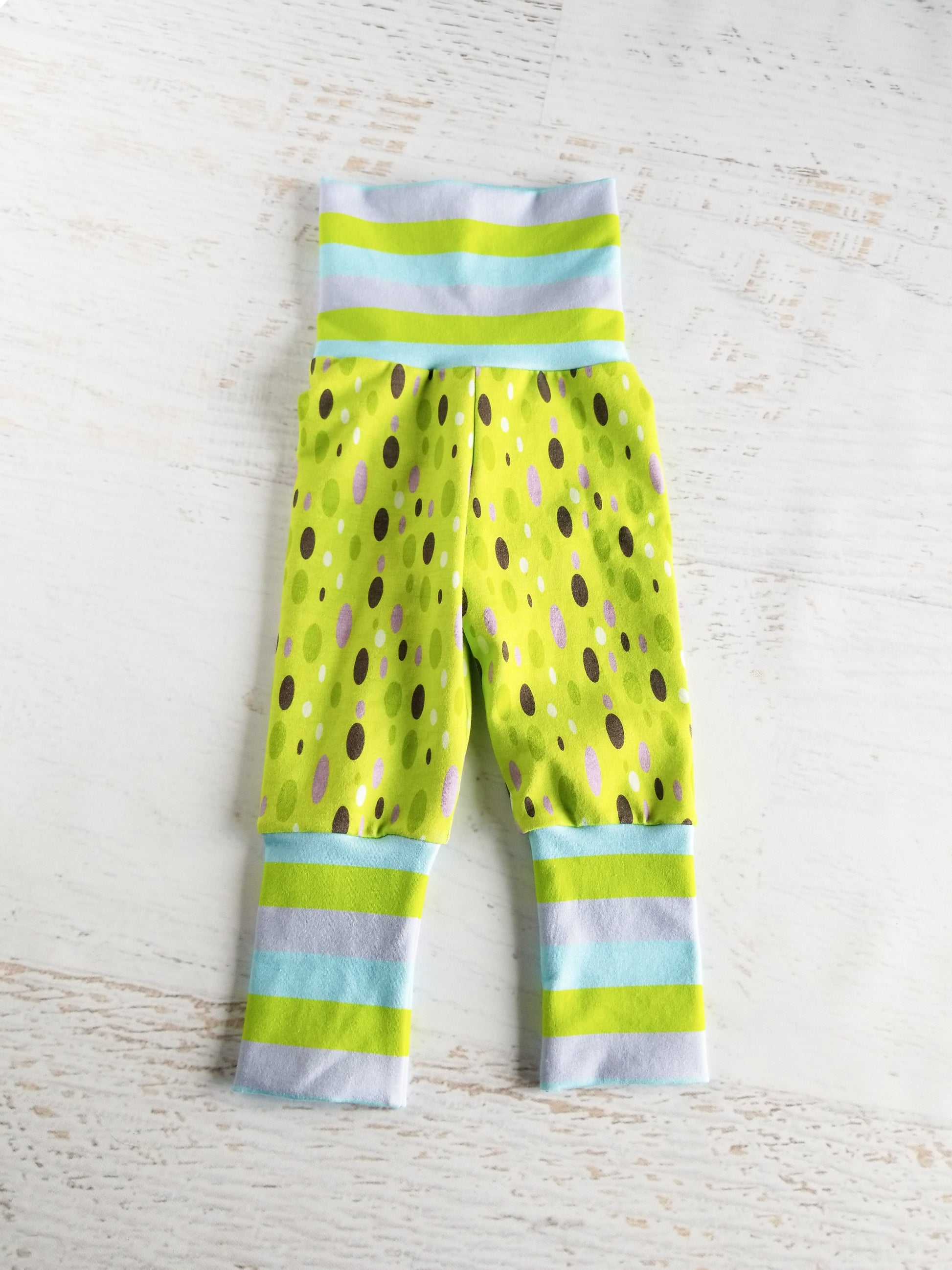 Grow with me joggers, size 1 (NB-6m), dragon spots and stripes