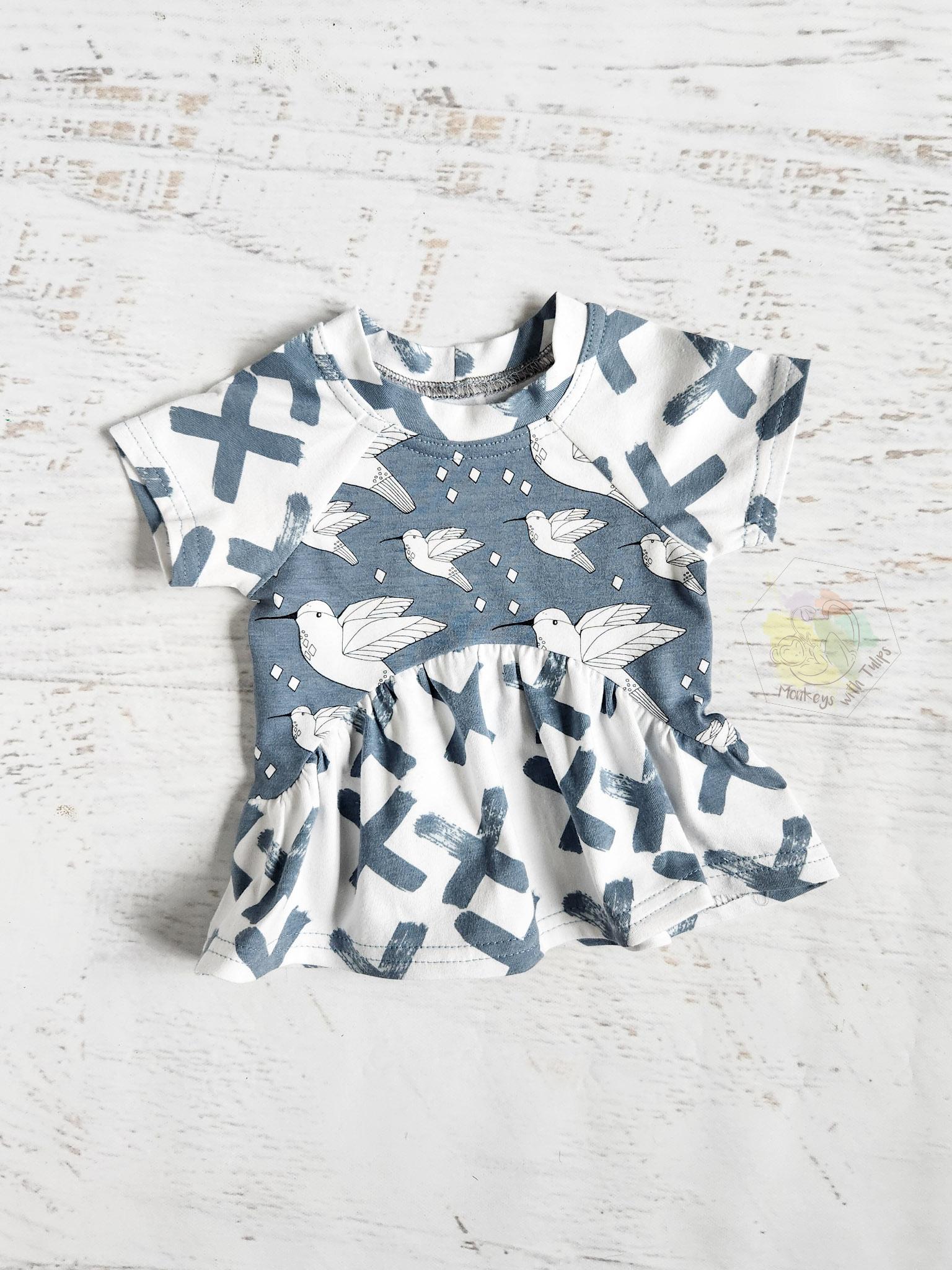 Comfy semi-relaxed fit peplum made of soft euro printed cotton spandex.
